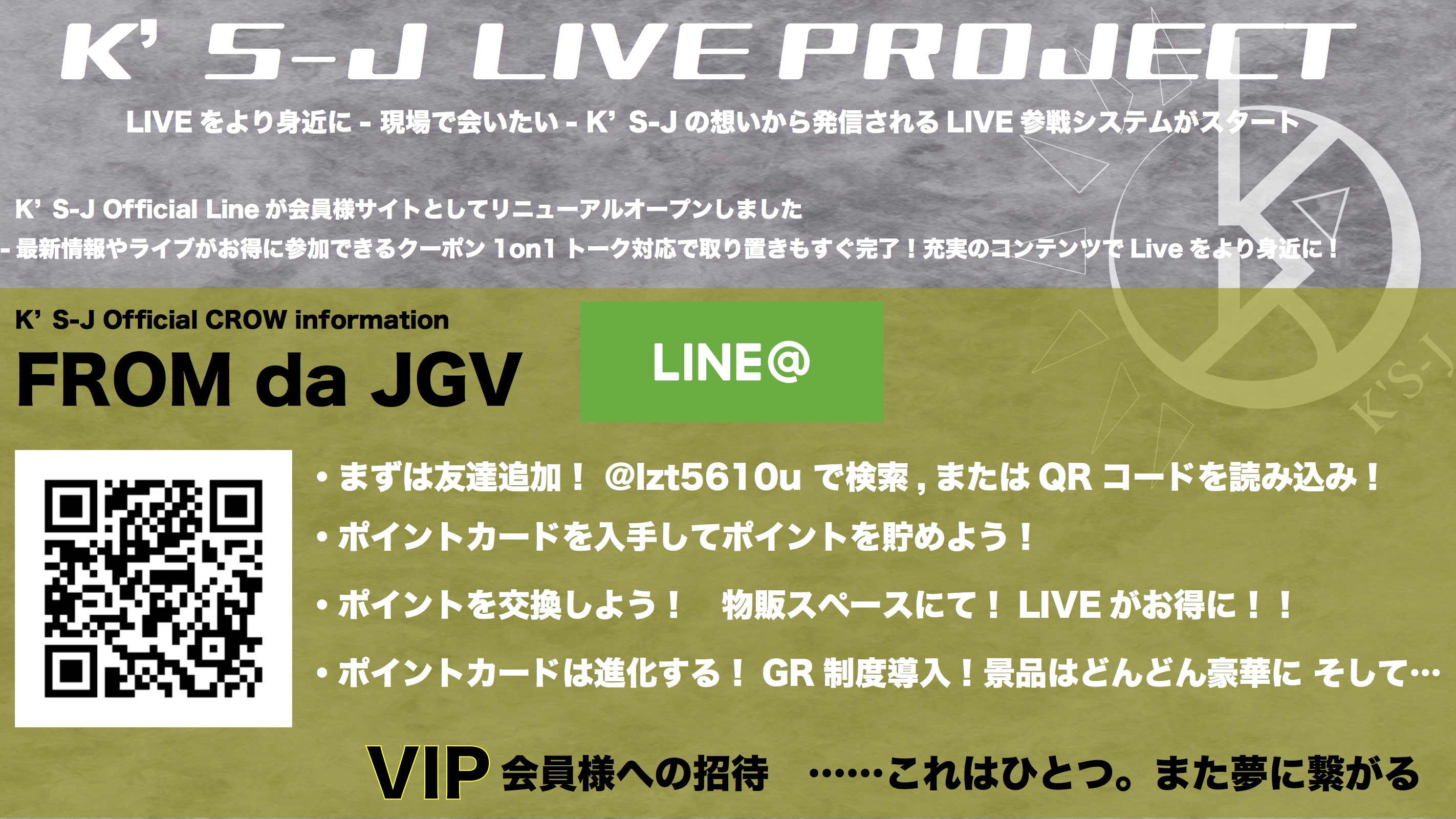 公式LINEを会員様サイトとしてオープン【K’S-J official CREW information FROM da JGV】